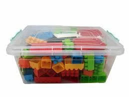 Πολύχρωμα τουβλάκια 140 τεμαχίων σε διάφανο κουτί αποθήκευσης.