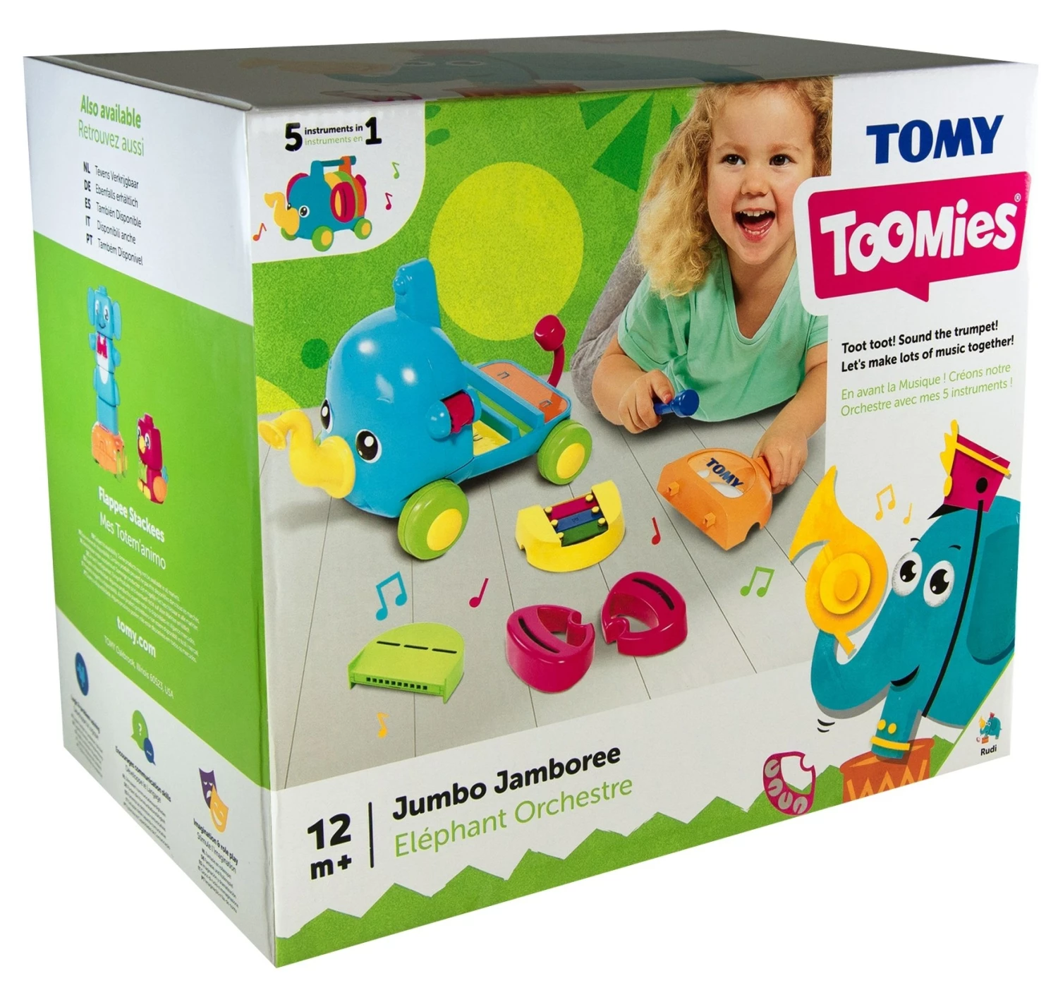 Baby Toomies μουσικός ελεφαντούλης. Ελεφαντούλης με 5 μουσικά όργανα που μπορεί να παίξει και να διασκεδάσει το παιδί αναπτύσσοντας τις δεξιότητές του. Στη συνέχεια θα πρέπει να βάλει το κομμάτια στη θέση τους ώστε να σχηματίσει τον ελεφαντούλη.