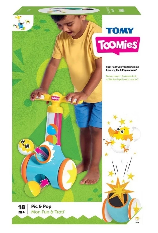Tomy Toomies Pic and Pop. Εξασκεί τις κινητικές δεξιότητες του παιδιού καθώς διασκεδάζει ενώ εκτοξεύει τις μπάλες μακριά και μετά τις τοποθετεί πίσω στη θέση τους.