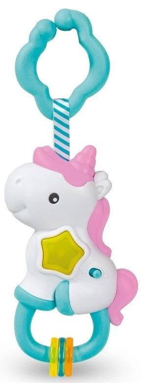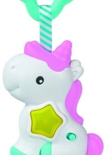 Κουδουνίστρα μονόκερος με φωτεινό κουμπί, ιδανικός για να ψυχαγωγεί το παιδί.