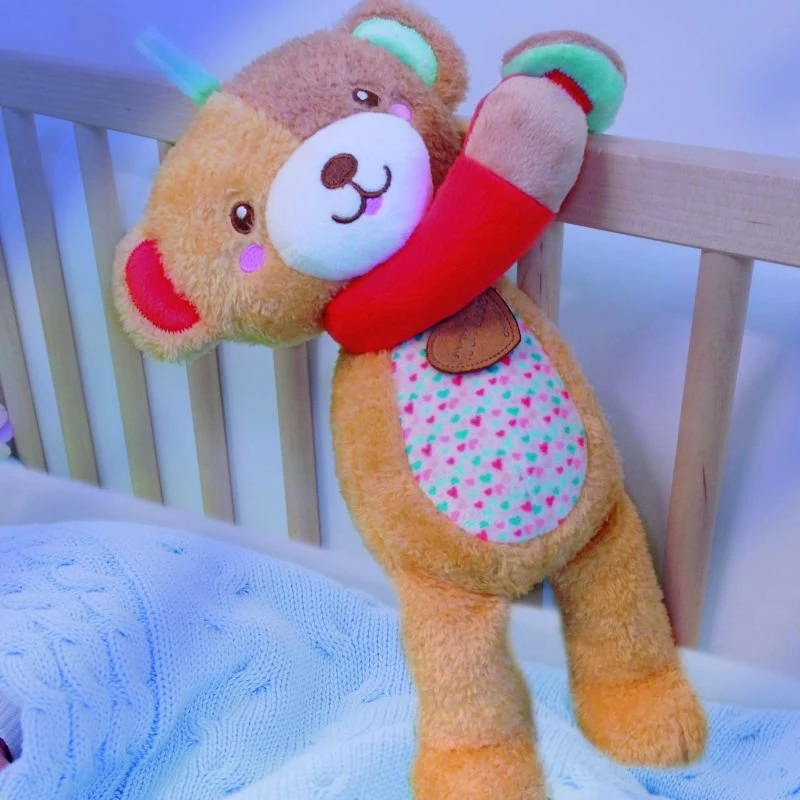 Baby Clementoni Βρεφικό Χνουδωτό Αρκουδάκι Αυτό το χαριτωμένο αρκουδάκι, αλληλεπιδρά με το παιδί χρησιμοποιώντας ηχητικά εφέ σχεδιασμένα να προκαλούν στιγμές τρυφερότητας. Οι μαγνήτες που είναι προσαρτημένοι στα χέρια προσκαλούν το παιδί να το αγκαλιάσει. Κρεμάται στο καροτσάκι ή την κούνια.