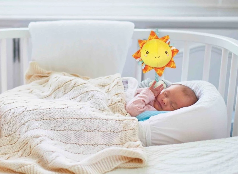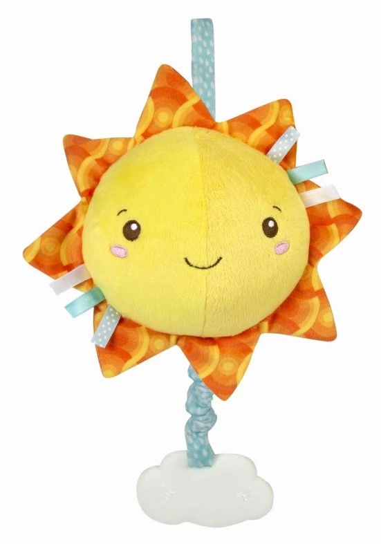 Απαλός μουσικός ήλιος που χαλαρώνει το μωρό κατά τη διάρκεια του ύπνου. Με πλαστικό σύννεφο και κορδέλα για να το κρεμάσετε στην κούνια ή το καροτσάκι. Διαθέτει Μελωδίες του Μπράχαμς.