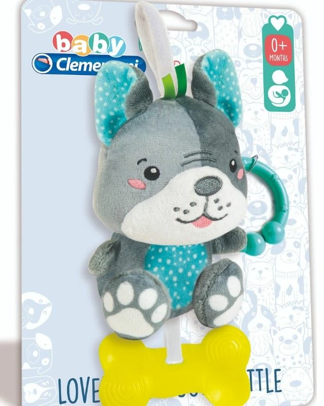 Baby Clementoni Βρεφικό Παιχνίδι Κουδουνίστρα Σκυλάκι Οι ποικίλες επιφάνειες, τα διαφορετικά υλικά και ο ήχος της κουδουνίστρας ενθαρρύνουν την πολυαισθητηριακή ανάπτυξη των μωρών. Με πρακτικό κρίκο για να την κρεμάτε οπουδήποτε και να τη μεταφέρετε.