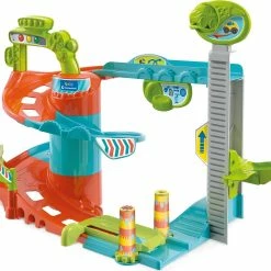 Μια πίστα γκαράζ γεμάτη διασκεδαστικές δραστηριότητες, κατασκευασμένη 100% από ανακυκλωμένο πλαστικό. Το αυτοκίνητο κάνει πραγματικές τούμπες όταν φτάνει στην κορυφή του ανελκυστήρα και στην βάση της ράμπας , ή τερματίζει τον αγώνα στο πλυντήριο αυτοκινήτων ,με βούρτσες πλυσίματος που πραγματικά γυρίζουν!!