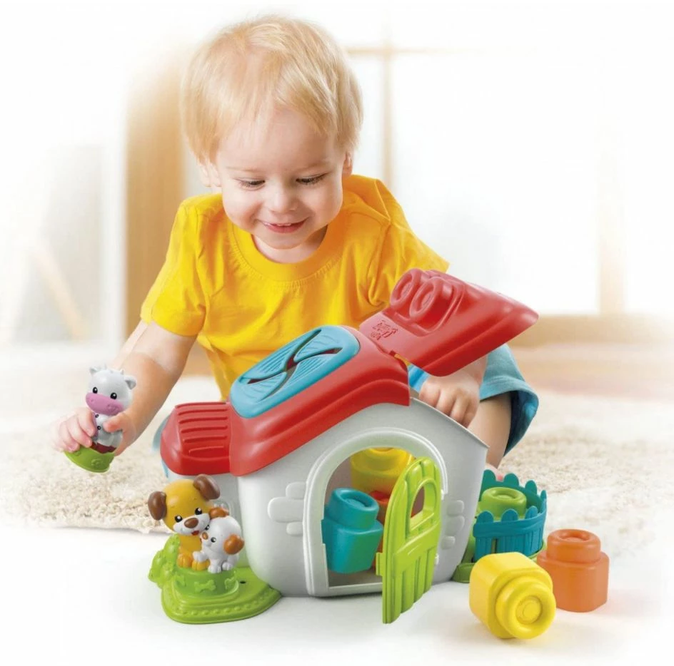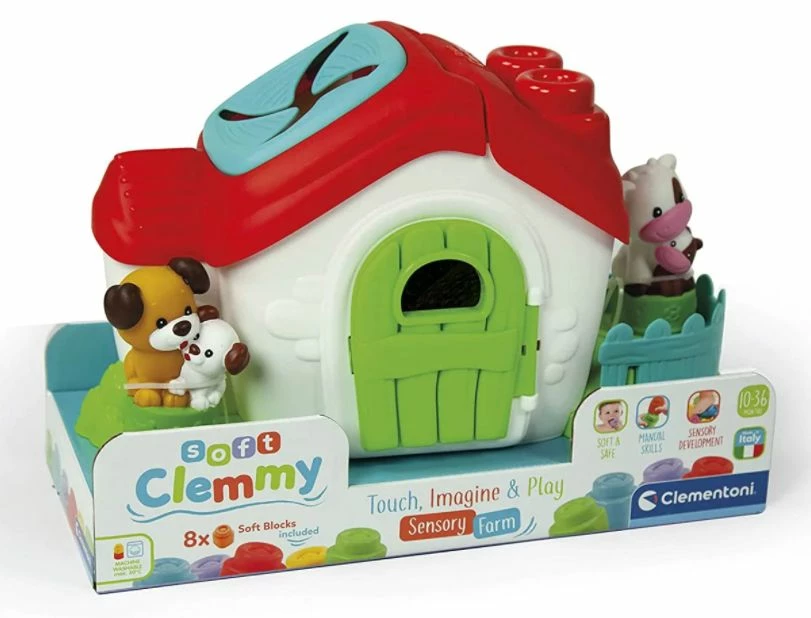 Ένα αγρόκτημα πλούσιο σε ανάγλυφες υφές, μαλακά τουβλάκια, περιεχόμενα και χαριτωμένα ζώα. Στο εσωτερικό περιέχονται πολλά τουβλάκια Clemmy με τα οποία το παιδί μπορεί να παίξει και να τοποθετήσει στα παράθυρα και στην οροφή. Οι δραστηριότητες αυτές βοηθούν στην ανάπτυξη των λογικών συνδέσεων, της επιδεξιότητας και του συντονισμού ματιού-χεριού. Επίσης, οι ανάγλυφες υφές διεγείρουν την ανάπτυξη της αφής.