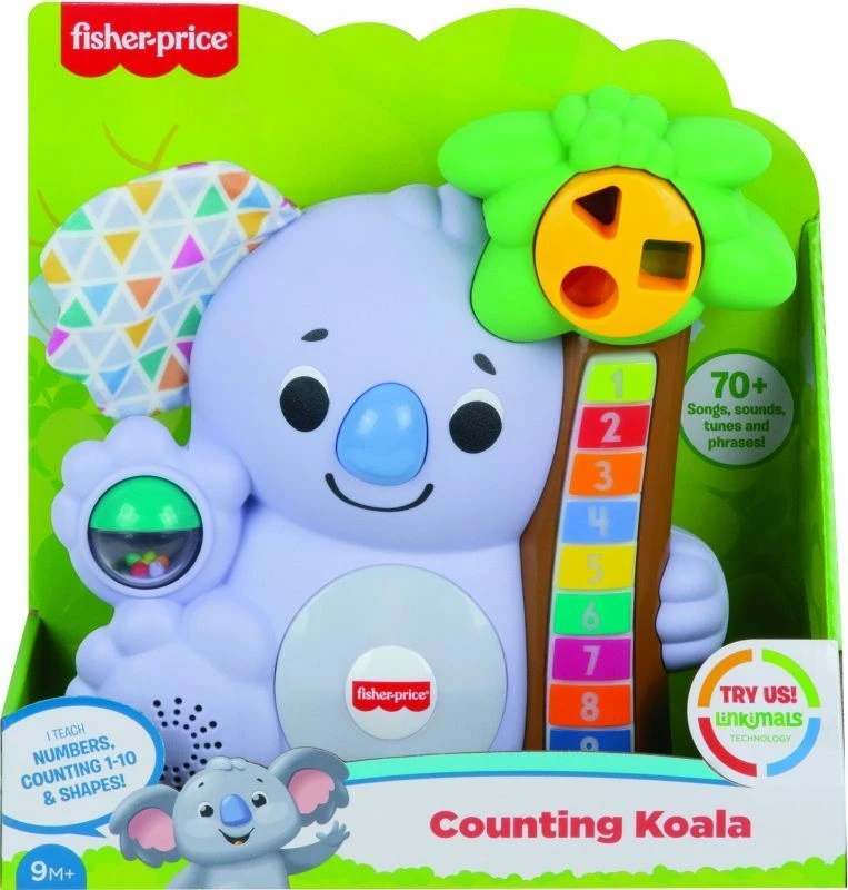Σκαρφαλώνοντας το φοινικόδεντρο με το φιλαράκι τους το Κοάλα, το μωρό κάνει μία απίθανη ανακάλυψη: αυτό το δέντρο έχει τετράγωνα, τρίγωνα και κύκλους! To Linkimals Κοάλα το Αριθμούλι της Fisher-Price είναι ένα εκπαιδευτικό ζωάκι με φωτάκια, τραγουδάκια και φράσεις που μαθαίνει στα μωρά αριθμούς και σχήματα.