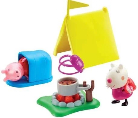 Το σετ παιχνιδιού περιέχει 2 φιγούρες (Πέππα και Σούζι Προβατίνα με αφαιρούμενη τσάντα πλάτης) σκηνή, υπνόσακο, εστία φωτιάς.