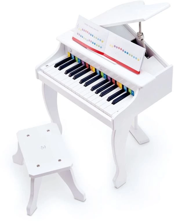 Hape Deluxe Λευκό Πιάνο Σαν Αληθινό Με 30 Πλήκτρα Και Καρεκλάκι