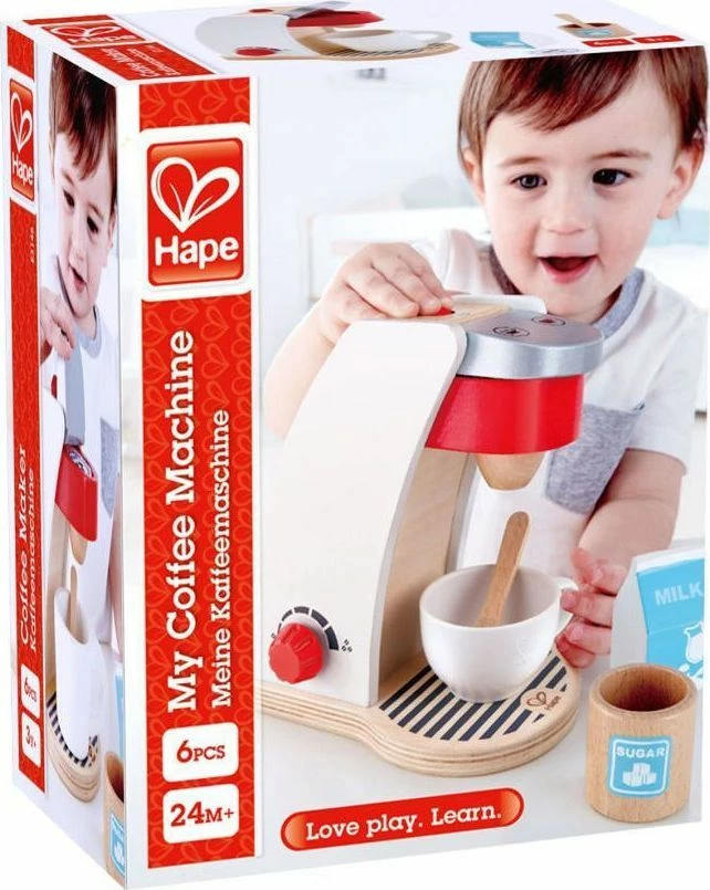 Hape Playfully Delicious Ξύλινη Καφετιέρα και Αξεσουάρ Περιλαμβάνει φλιτζάνι, κουτάλι, ζάχαρη και γάλα.Δηλαδή ότι χρειάζεσαι για να φτιάξεις τον πιο ωραίο καφέ. Διαστάσεις προϊόντος: 17,5×10,6×19,6cm (ΜxΠxΥ).