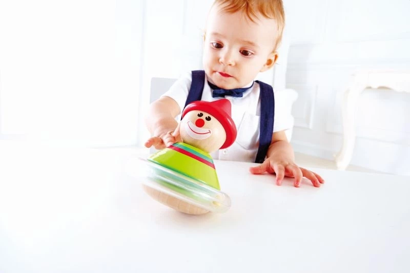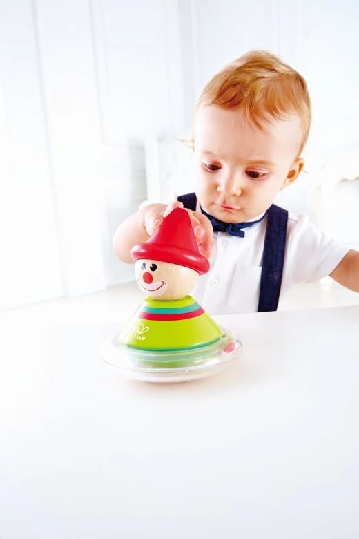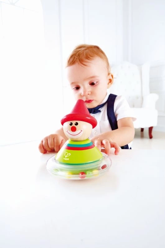 Hape ξύλινα γύρω γύρω Ράλφ. Ο χαρούμενος και πολύχρωμος κλόουν επιστρέφει στην αρχική του θέση όταν τον σπρώχνετε και λατρεύει να στριφογυρίζει!