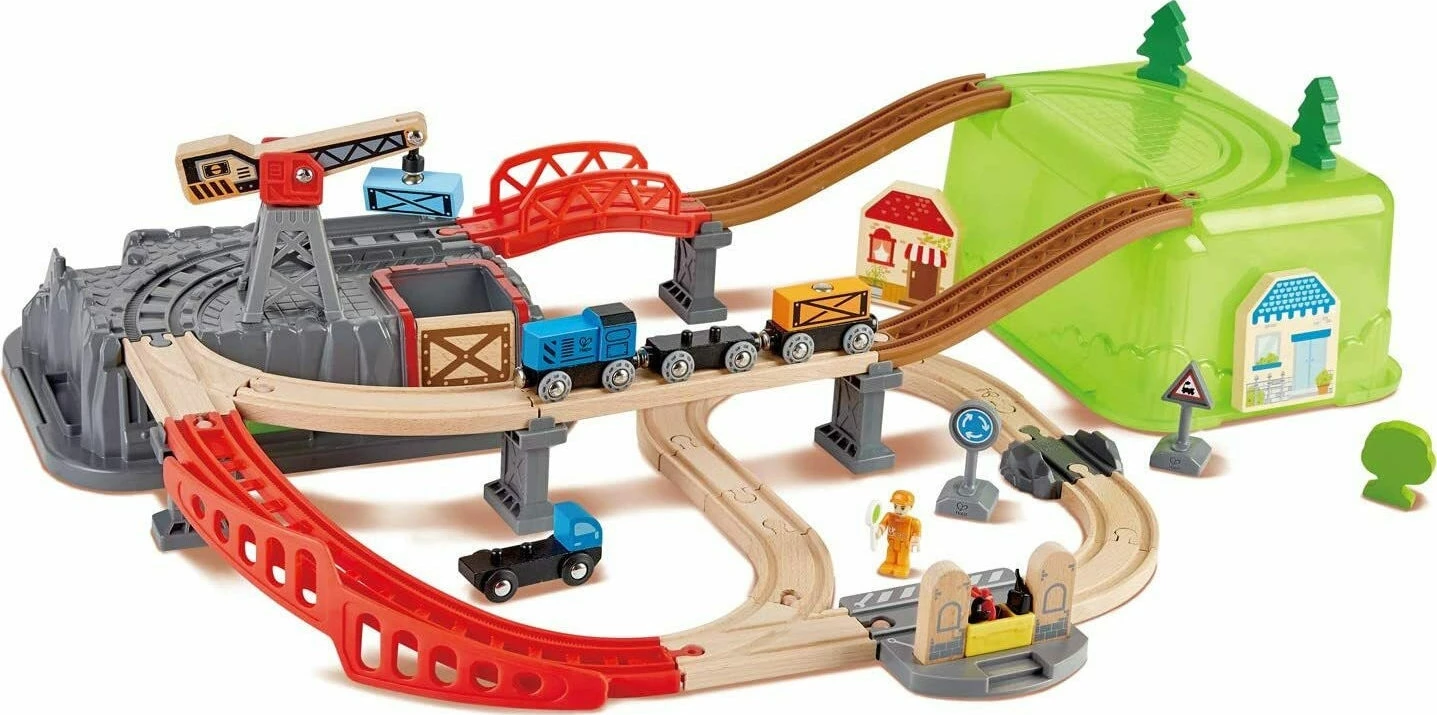 Hape Ξύλινα Σετ Κατασκευής Σιδηρόδρομου Με Βαλιτσάκι Μεταφοράς Railway Builder Set (E3764)