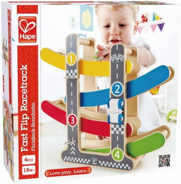 Hape ξύλινα ξύλινη πίστα ταχύτητας με δύο αυτοκινητάκια.