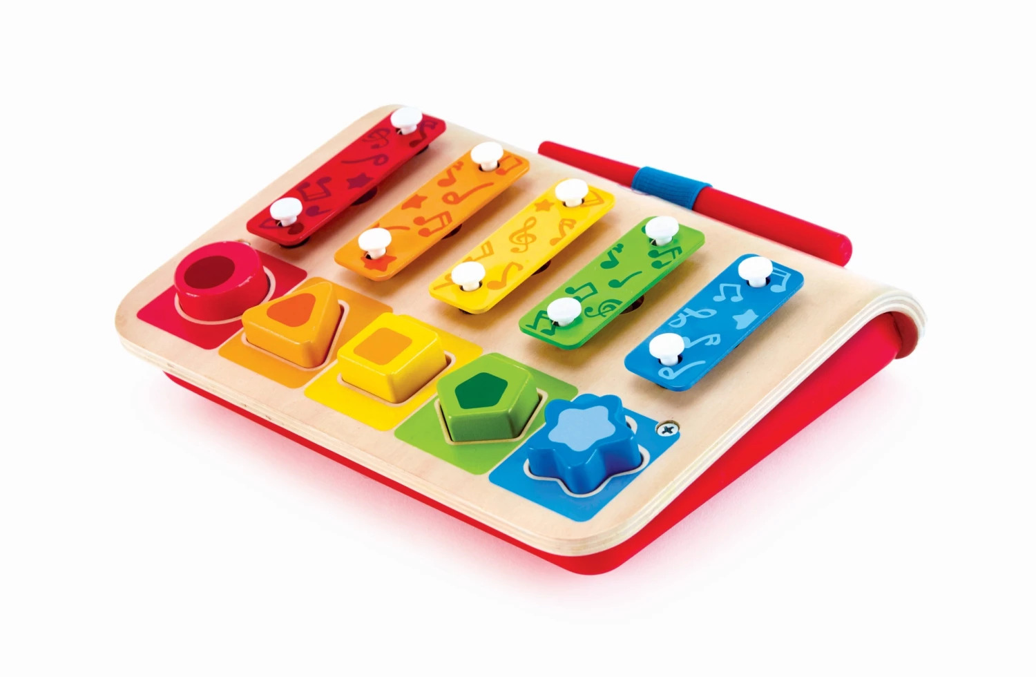 Hape Ξύλινο μουσικό παιχνίδι – Ο μικρός τυμπανιστής Είναι πιάνο ή παζλ; Λοιπόν, το πολυλειτουργικό Ξυλόφωνο-πιανάκι/παζλ είναι ένα πιάνο, ξυλόφωνο και το παζλ, όλα σε ένα! Περιλαμβάνει συνολικά 7 κομμάτια Διαστάσεις: 79×25