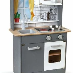 Τα παιδιά θα αγαπήσουν αυτή την ρεαλιστική κουζίνα. Ζητήστε από το παιδί σας να σας προετοιμάσει ένα “γεύμα” καθώς τα παιδιά λατρεύουν να μιμούνται τους ρόλους των μεγάλων!Οι μικροί Σεφ μπορούν να κρεμάσουν τα σύνεργα τους στην ειδική ράγα και στην συνέχεια να «μαγειρέψουν» στον φούρνο (ήχος μαγειρέματος και τηγανίσματος και φως). Ο φούρνος μικροκυμάτων διαθέτει χερούλι με ήχο. Τελειώνοντας την μαγειρική τα παιδιά μπορούν να αποθηκεύσουν τα σύνεργα τους στο ντουλάπι, να «καθαρίσουν» τον πάγκο και να «πλύνουν» τα σύνεργα τους χρησιμοποιώντας τον νιπτήρα και την βρύση! Περιλαμβάνονται μεταλλικό τηγάνι και σπάτουλα μαγειρικής.