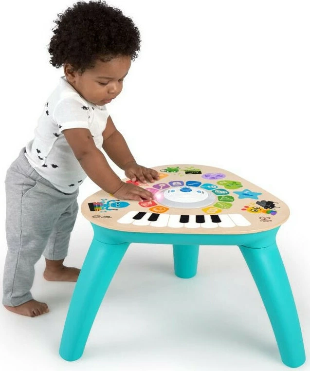 Οι απεριόριστες δυνατότητες της μουσικής συντονίζονται σε ένα επιτραπέζιο παιχνίδι μαγικής αφής προσφέροντας στον μικρό σας μουσικό συνθέτη την δυνατότητα συντονισμού μέσα από μουσικές εμπειρίες. Το ξύλινο κέντρο δραστηριοτήτων διαθέτει βραβευμένη τεχνολογία μαγικής αφής και τοποθετεί τη μουσική στα χέρια του παιδιού σας. Απλώς αγγίζει την ξύλινη επιφάνεια και πειραματίζεται με τον ήχο. Οι 22 επιλογές οργάνων και 3 τρόποι παιχνιδιού ενθαρρύνουν το μωρό σας να εξερευνήσει και να δημιουργήσει τις δικές του μουσικές συνθέσεις. Στη λειτουργία εκμάθησης το παιδί μπορεί να ανακαλύψει ονόματα οργάνων και χρώματα σε απλά Αγγλικά. Η ελεύθερη λειτουργία ενεργοποιεί τα ηχητικά εφέ, οπότε ο χρόνος αναπαραγωγής δεν γίνεται ποτέ βαρετός. Εναλλακτικά, αφαιρέστε τα επιτραπέζια πόδια και δημιουργήστε ένα παιχνίδι δαπέδου!