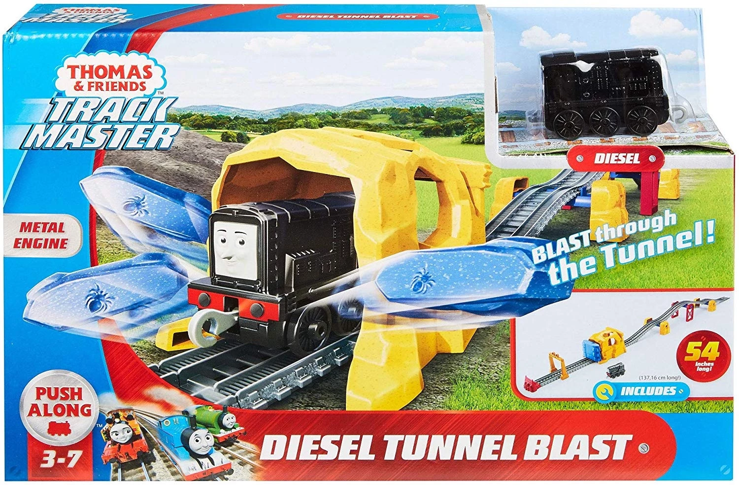 Τόμας Ανατίναξη στο Τούνελ (με τον Diesel) Ο Diesel περνάει από την μπλοκαρισμένη σήραγγα… Η πίστα μήκους 137 εκ συνδέεται με άλλα κομμάτια TrackMaster για να δημιουργήσετε απεριόριστες περιπέτειες! Περιλαμβάνεται μεταλλικό τρενάκι Diesel