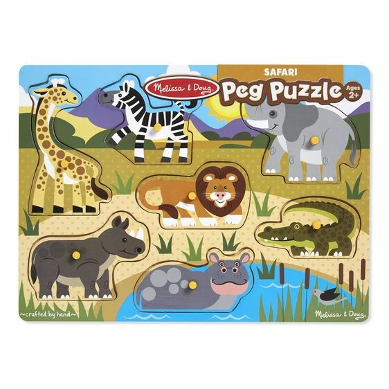Το παιδί σας θα απολαύσει μια περιπέτεια παζλ όταν τοποθετεί επτά άγρια ??ζώα πάνω από τις αντίστοιχες εικόνες στον πίνακα του παζλ. Αυτό το ανθεκτικό παζλ 7 τεμαχίων διαθέτει μανταλάκια που πιάνονται εύκολα και ξύλινη κατασκευή. Ιδανικό για τη μνήμη, τις λεπτές κινητικές δεξιότητες και τον συντονισμό χεριού-ματιού και ένας συναρπαστικός τρόπος εξοικείωσης με τα ζώα και τον φυσικό κόσμο.