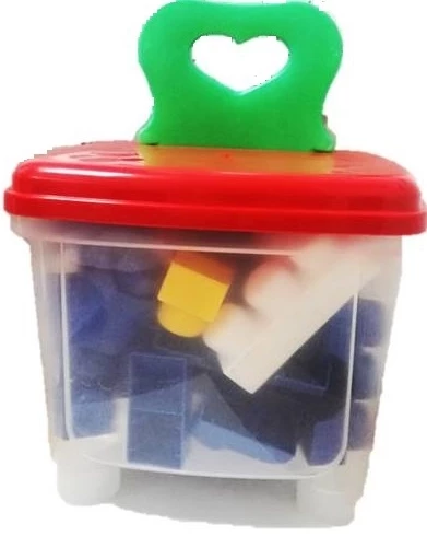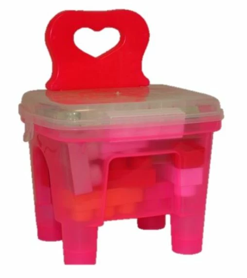 Περιέχει πάνω από 20 τουβλάκια σε διάφορα μεγέθη και χρώματα. Με επιφάνεια ώστε να καθίσει το παιδάκι σας 23×18 εκ. Με πλατούλα με σχήμα καρδιά από όπου μπορείτε να το μεταφέρετε.