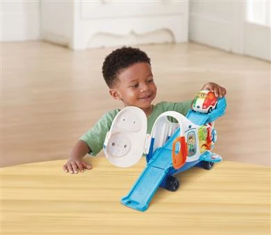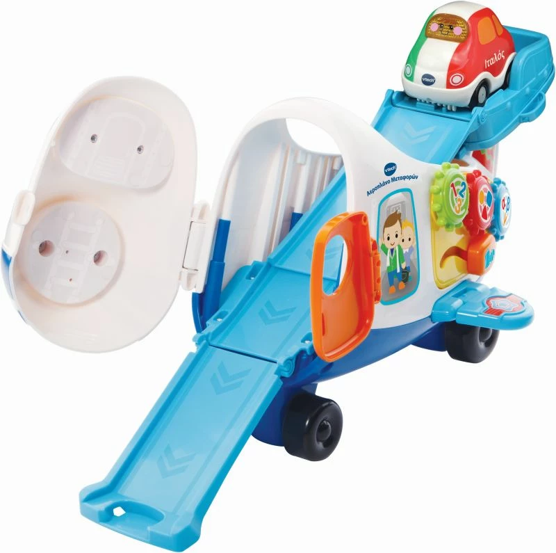 Έφτασε το Αεροπλάνο Μεταφορών με τον φίλο του τον Ιταλό! Άνοιξε την πόρτα του Αεροπλάνου Μεταφορών, ξεδίπλωσε τις ράγες! Δείτε τον Ιταλό να τρέχει στην πίστα! Tώρα μπορείτε να φορτώσετε και να μεταφέρετε τα οχήματα της συλλογής σας Toot-Toot Αυτοκίνητα! Περιλαμβάνει 3 θέσεις Smart Point που ενεργοποιούν ήχους, τραγουδάκια και διασκεδαστικές φράσεις. Πατήστε την οθόνη του μικρού αγωνιστικού οχήματος που περιλαμβάνεται για να ενεργοποιήσετε 3 τραγούδια, 6 μελωδίες και ρεαλιστικά ηχητικά εφέ. Ενθαρρύνει την ανάπτυξη κινητικών δεξιοτήτων και το ευφάνταστο παιχνίδι.